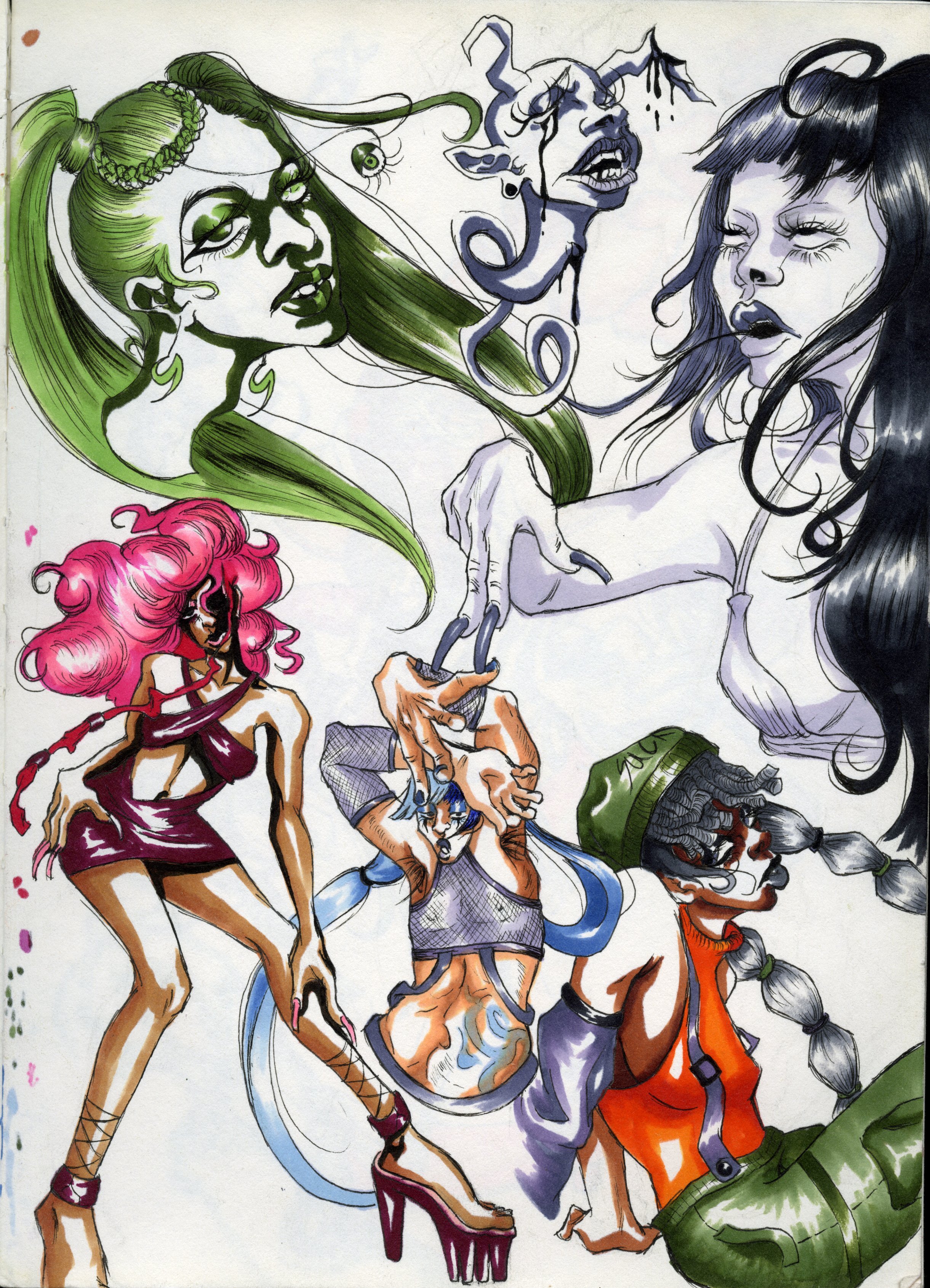 Although UC’s art showcases a fusion of anime, drag and horror, each have their own distinct differences. This specific genre highlights anime-like facial features, intense emotions, character designs and dynamic angles involving foreshortening. All characteristics of this visually stunning art form.